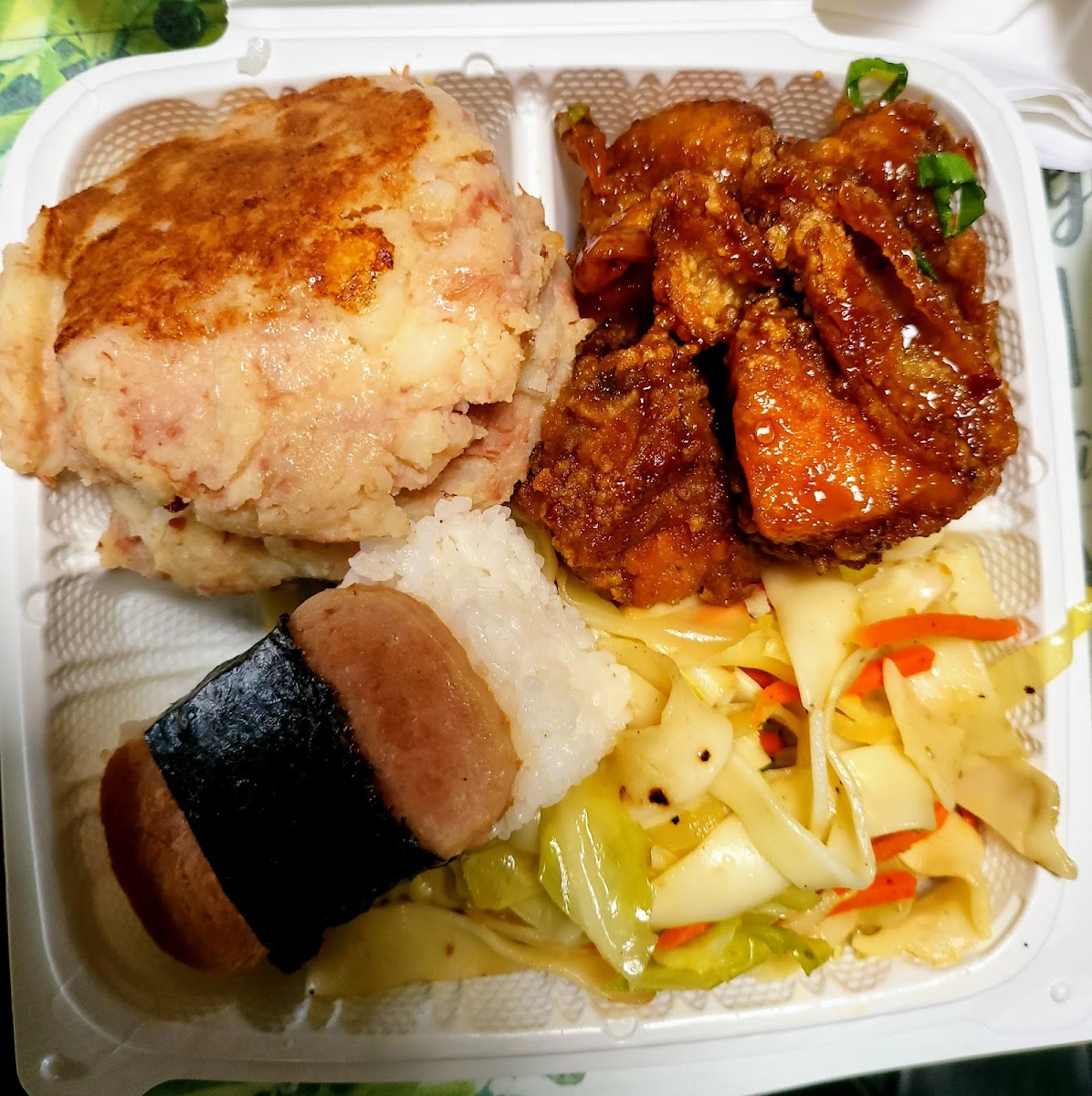 Visitors tend to appreciate the balance of affordable prices with generous portions that lean toward individual servings—almost tapas-style, giving the chance to try various dishes at once. The menu highlights include a mix of island-style plate lunches like garlic chicken chow and bento combos along with familiar sides such as potato salad and the tangy sweetness of namasu. Varieties of sushi and musubi make it a versatile stop for anyone craving a quick bite with local flair.